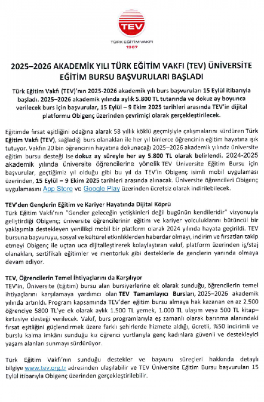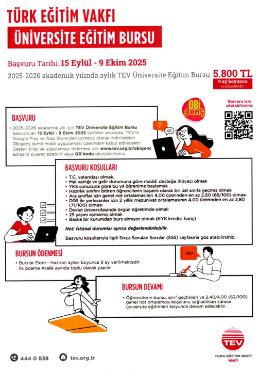 2025/2026 Öğretim Yılı TEV Üniversite Eğitim Burs Başvuru