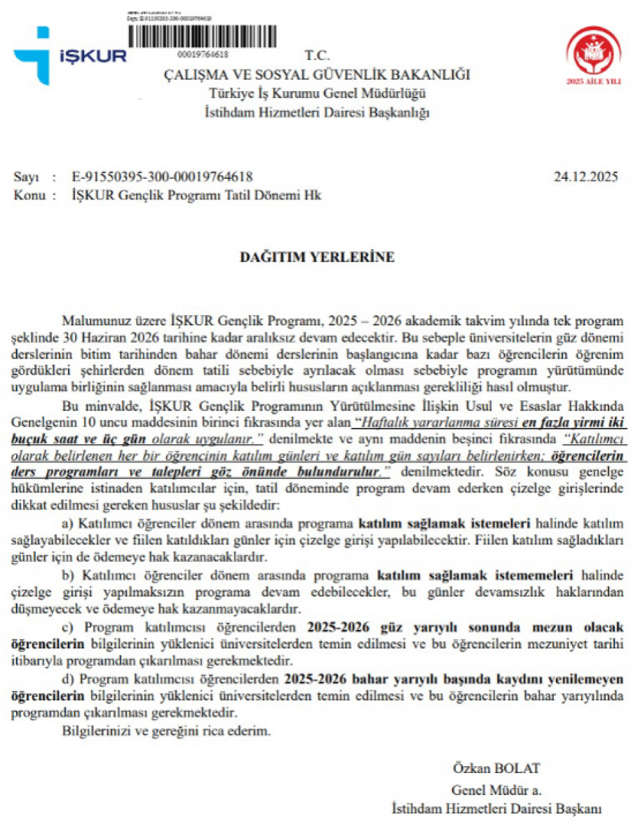 2025-2026 EĞİTİM-ÖĞRETİM YILI BAHAR YARIYILI YATAY GEÇİŞ İŞLEMLERİ