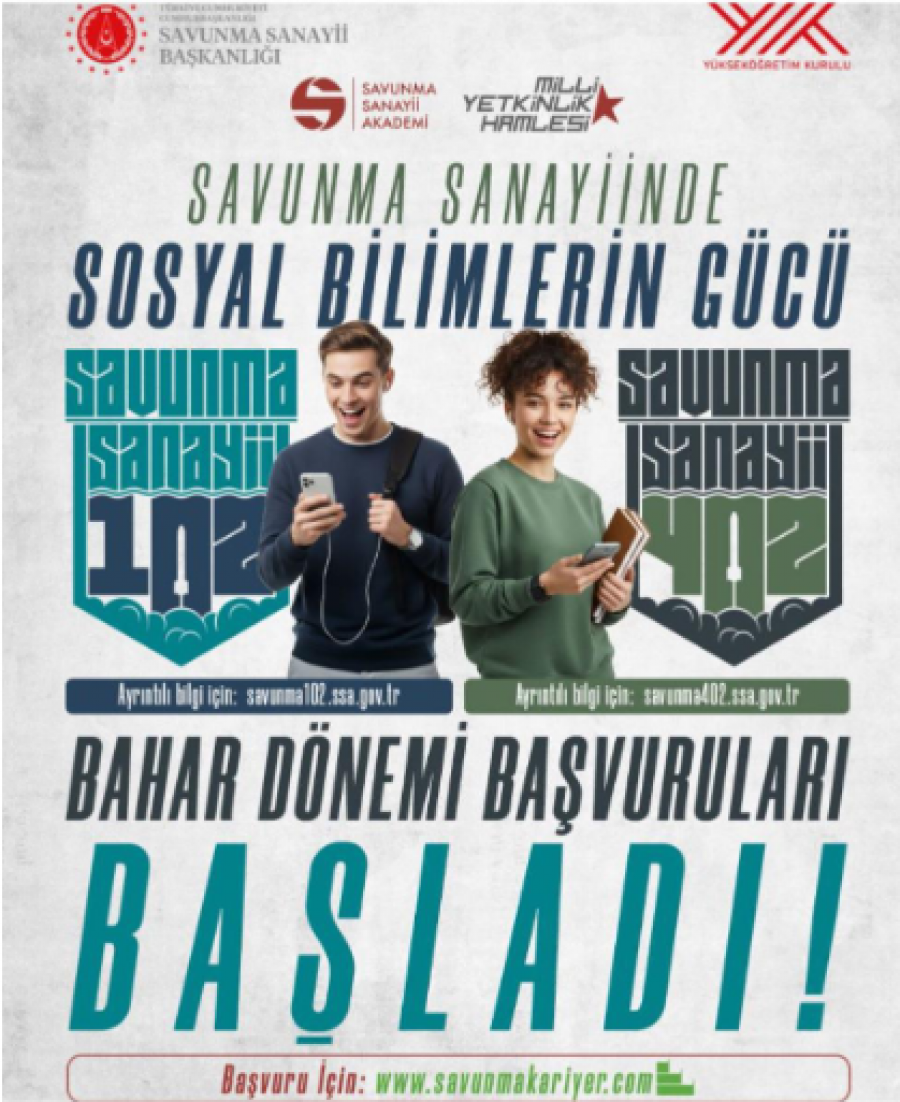 Milli Yetkinlik Hamlesi kapsamında Savunma Sanayi Akademisi tarafından 14 hafta devam edecek YÖK onaylı sertifikalı online eğitim programının başvuruları başlamıştır.