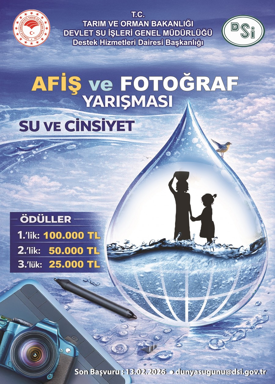 DSİ Genel Müdürlüğünün 31.12.2025 tarih ve 6693678 sayılı yazısı ile her yıl 22 Mart'ta kutlanan "Dünya Su Günü" 2026 yılı "Su ve Cinsiyet" temasının olarak belirlendiği ve bu anlamlı günün öneminin genç nesillere benimsetilerek, su ve cinsiyet konusunda bilgi düzeyinin artırılmasına yönelik hususların, anılan konu başlığında çeşitli faaliyetlerle işlenmesi amacıyla herkesin katılabileceği, ödüllü "Afiş, Fotoğraf ve Kısa Film Yarışması" düzenleneceği bildirilmektedir.