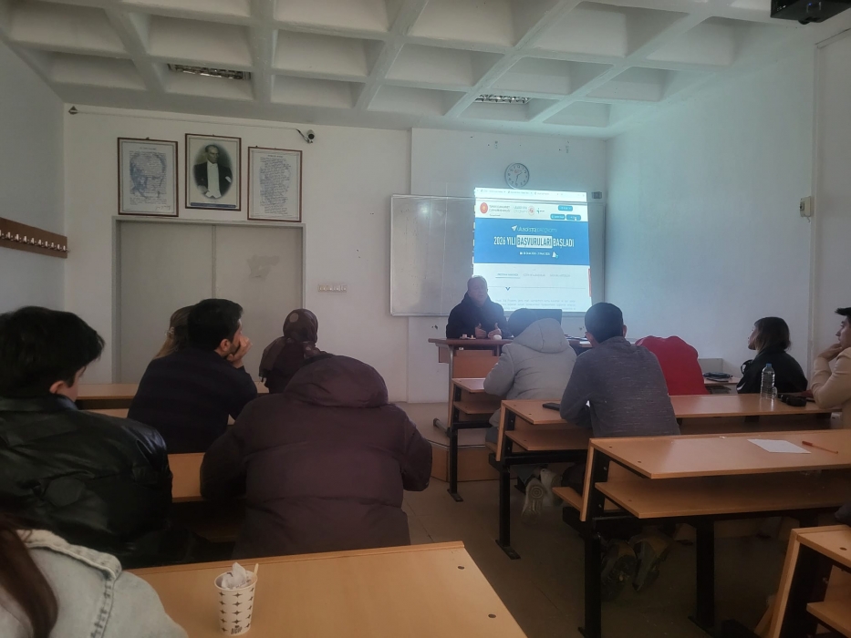 Meslek Yüksekokulumuz Staj Komisyonu adına Dr. Öğr. Üyesi Muzaffer YÜCEL, Madencilik ve Maden Çıkarma Bölümü öğretim üyelerinden Doç. Dr. Deniz AKBAY, Dr. Öğr. Üyesi Özkan ATEŞ ve Dr. Öğr. Üyesi Erdem GÜNDOĞDU, öğrenci işleri biriminden Melek BEKTAŞ, muhasebe biriminden Kadriye ERTAN ve Sema MUTLU KARAKAYA tarafından gerçekleşirilen oryantasyonda; staj işlerimlerinde dikkat edilecek hususlar, sigorta girişi süreçleri ve Ulusal Staj Programı süreçleri konusunda bilgilendirme yapıldı.