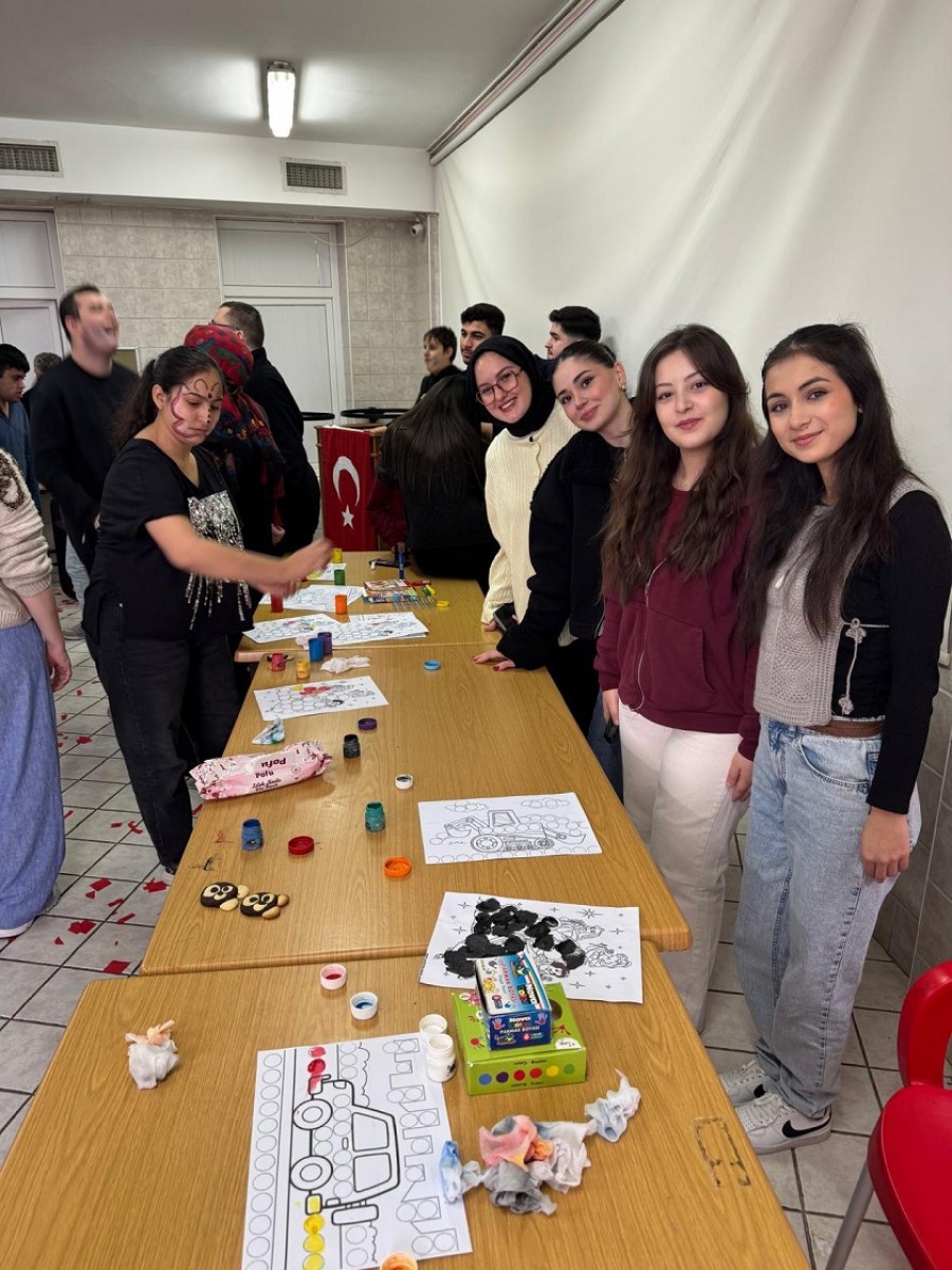 Meslek Yüksekokulumuz Sosyal Sorumluluk Koordinatörlüğü öncülüğünde, Öğr. Gör. Ayşen ÇETİN ve Öğr. Gör. Gülşah KORUCU DÜNDAR eşliğinde gönüllü öğrencilerimizden oluşan bir grup ile 3 Aralık Dünya Engelliler Günü kapsamında Zeynep Bodur Okyay Özel Eğitim Meslek Okulu’na bir ziyaret gerçekleştirilmiştir. Ziyaret kapsamında özel eğitim öğrencileriyle birlikte parmak boyası ve yüz boyama etkinlikleri yapılmış, ayrıca hazırlanan ikramlar paylaşılmıştır. Bu etkinlikler aracılığıyla öğrenciler arasında keyifli ve anlamlı bir etkileşim sağlanmıştır.
