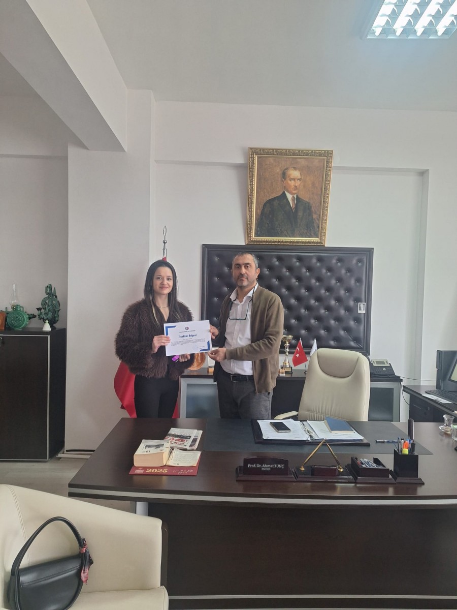 Meslek Yüksekokulu Müdürü Prof. Dr. Ahmet TUNÇ tarafından, Muhasebe ve Vergi Uygulamaları Bölüm Başkanı Doç. Dr. Fatih GÜLER’in danışmanlığında, 2024-1 döneminde TÜBİTAK 2209-A Proje önerileri kabul edilen; Selinay ÖZDEMİR, Esra ÖZDOĞANOĞLU, Sudenur ALTUN, Sude GÜLER CANDAN, Melik GÜNBEYİ, Kumral AĞGÜL, Zekiye ÖZÇELİK isimli öğrencilere “1982 Anayasası Döneminde Yürürlüğe Konan Vergi Anlaşmalarına İlişkin Kanunların Onaylanma Süreçlerinin Diğer Uluslararası Anlaşmalarla Karşılaştırılması” , “Devlet Üniversitelerinin Meslek Yüksekokulları Bünyesinde Yer Alan Muhasebe ve Vergi Uygulamaları Programlarının Öğretim Planlarının Analiz Edilerek Sektörel Uyumlarının TÜRMOB Staja Giriş Sınavı Aracılığıyla Ölçülmesi”, “Vergi Mahkemelerinin Vergi Kanunları Üzerindeki Etkisinin Anayasa Mahkemesi Somut Norm Denetimi Kararları Üzerinden Analiz Edilmesi” başlıklı projelerini başarıyla tamamlamaları sebebiyle teşekkür belgesi takdim edilmiştir. Prof. Dr. Ahmet TUNÇ, 2025-1 döneminde, Muhasebe ve Vergi Uygulamaları Bölüm Başkanı Doç. Dr. Fatih GÜLER’in danışmanlığında TÜBİTAK 2209-A Proje önerileri sunan Emine HADDUR, Büşra ÇAYLI, Merve AKYAPI, Aleyna TEKİNALP, Hilal İBA, Nigar Eda TEKİN, Selinay DÖNMEZ, Mehmet Can YILAN isimli öğrencilere de proje önerileri sebebiyle teşekkür etmiş, proje sürecine ilişkin tavsiyelerini iletmiştir.