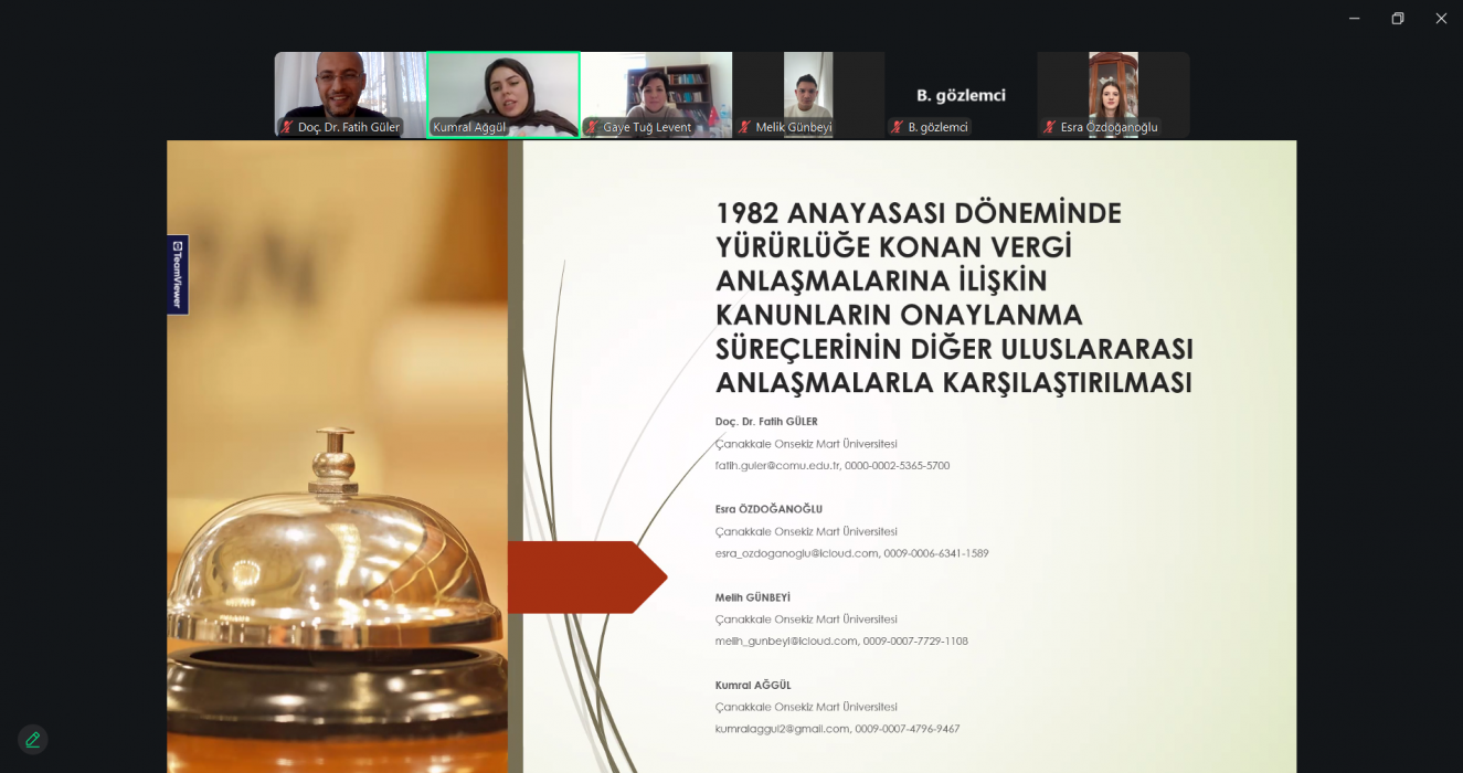 Muhasebe ve Vergi Uygulamaları Bölüm Başkanı Doç. Dr. Fatih GÜLER’in danışmanlığında, 2024-1 döneminde TÜBİTAK 2209-A Proje önerisi kabul edilen Esra ÖZDOĞANOĞLU, Melik GÜNBEYİ VE Kumral AĞGÜL, “1982 Anayasası Döneminde Yürürlüğe Konan Vergi Anlaşmalarına İlişkin Kanunların Onaylanma Süreçlerinin Diğer Uluslararası Anlaşmalarla Karşılaştırılması” başlıklı bildiriyi 19 Aralık 2025 tarihinde Anadolu 18. Uluslararası Sosyal Bilimler Kongresinde online olarak sunmuşlardır.